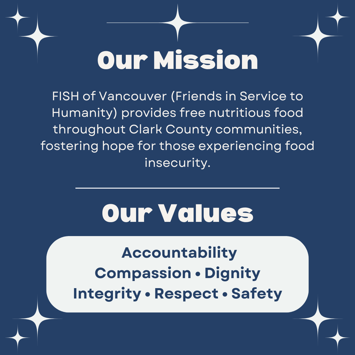 Food nourishes. Food strengthens. Food brings us together. With good nutrition, infants grow strong, children thrive in school, and older adults stay healthier. Families create deeper bonds when they can share a meal together. At FISH, we know that food provides not only energy but also HOPE.